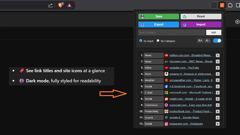 - ๐ Sorts links by save date or category